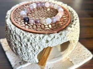 紫羅蘭石は「チャロアイト(紫龍晶)」とも呼ばれます。チャロアイトは知恵と精神的な力の象徴と見なされ、装着者の集中力を高め、思考力を向上させるのに役立つと言われています。さらに、幸運を招き、守護をもたらすという意味も込められています。
